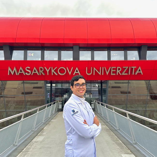 Neste ano de 2023, as instituições concederam o intercâmbio para Vinicius Correia Moraes, estudante do 9º período do curso de medicina da Unifacisa. O graduando esteve durante todo o mês de novembro na República Tcheca para dar continuidade ao seu internato médico no setor clínico cirúrgico do Hospital Universitário de Brno, da Universidade Masaryk. A instituição que acolheu o brasileiro é uma das mais respeitadas da Europa Central e, em junho deste ano, foi classificada entre as 400 melhores universidades do mundo, segundo o portal de notícias News From MUNI.